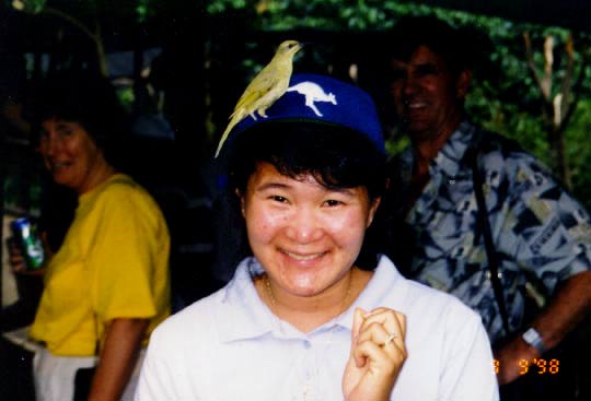 ![]() Other tourists seem amused by the bird on Gloria's hat. |