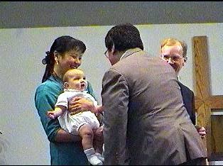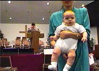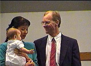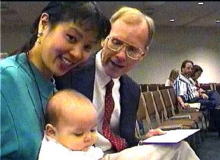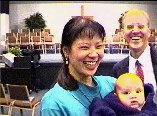 Kay, a friend of Tim's from Law School, holds Matthew.